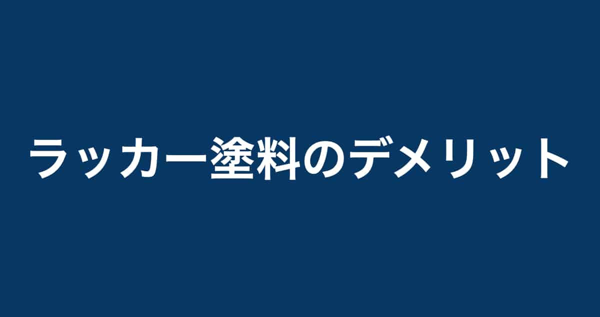 またラッカー塗料はシンナー等有機溶剤を使用しているものが多いため、有機溶剤による体調不良が出る可能性があります。作業を行う際は必ず通気性の良い場所で行うと共に、健康的に気になる際は防護マスクなどを使用し、健康的問題が出ないよう事前に対策を取りましょう。